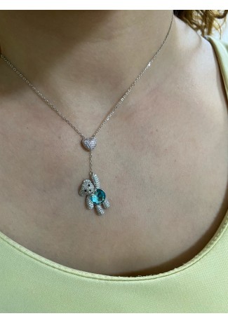 Gargantilha Urso Ted Cravejado Safira prata 925