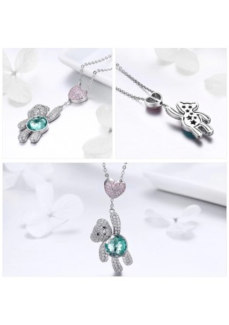 Gargantilha Urso Ted Cravejado Safira prata 925Peça em prata 925 cravejada com microzirconias crista..