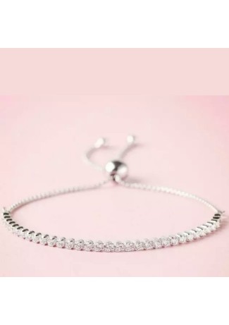 Pulseira Ajustavel Riviera zirconias Cristais Prata 925