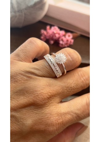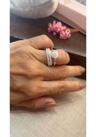 Anel Aparador & Solitário Infinito Amor Prata925