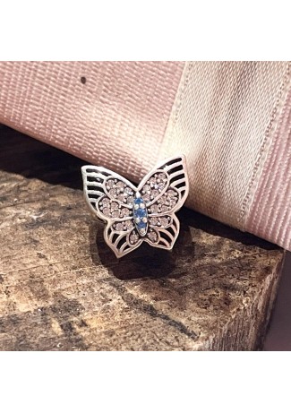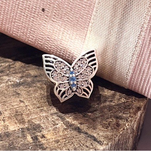 Berloque Borboleta Azul E zirconias Prata 925Compativel com pulseiras para berloques de outras..