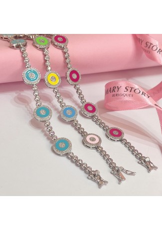 Pulseira Margarida Cravejada Zirconias coloridas Prata925
