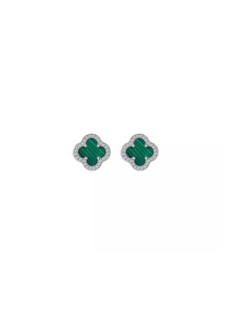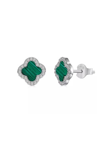 BRINCOS TREVO MALAQUITA CRAVEJADO PRATA 925