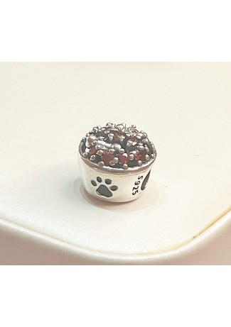 Berloque Tigela Dog Pet  cravejada zirconias Prata 925