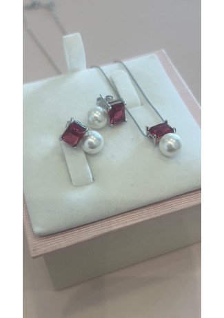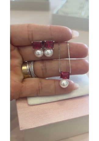 Gargantilha & Brincos Azul Tiffany / Pérolas Shell Prata 925