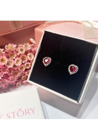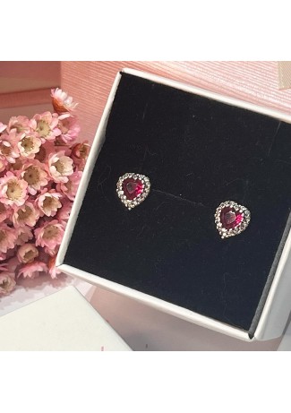 Brincos Coraçaõ Rubi cravejado princesa Prata 925