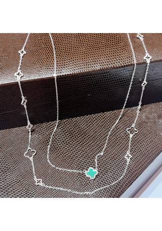 - Modelo: Gargantilha Trevo Duplo / longo Prata 925 Verde