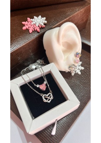 Gargantilha Casal Coração infinito Prata 925Prta 9525 Gargantilha V-15 com 45 cmt Im..