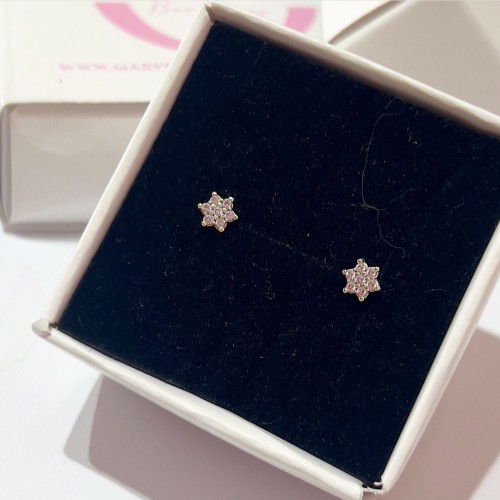 Brincos Flor Rosa Tarraxa Baby Prata 925,,