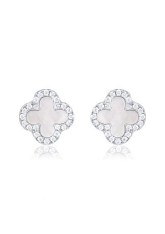 Brincos Trevo Cravejado Madrepérola Prata 925