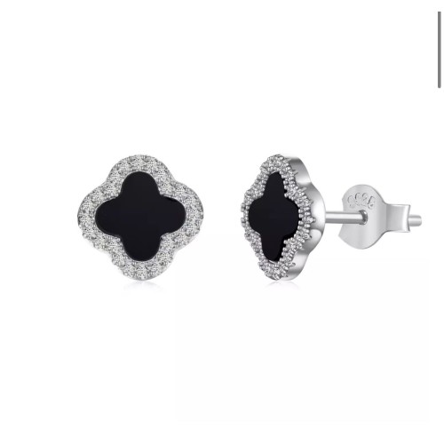 - Modelo: Brincos Trevo V.C Onix crvejado Prata 925