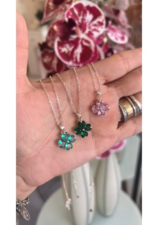 - Modelo: Conjunto Colar + Brincos trevos Prata 925 Rosa