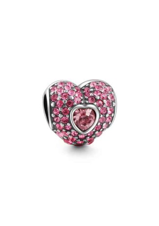 • BE-376 Berloque Romântico Coração em Prata com Zircônias Rosa