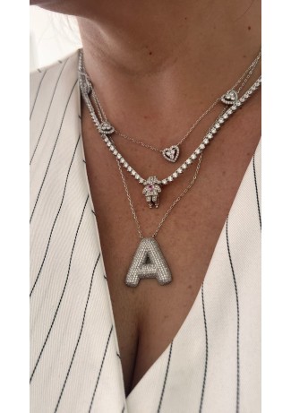- Modelo: GARGANTILHA LETRA R PRATA 925 ZIRCONIAS