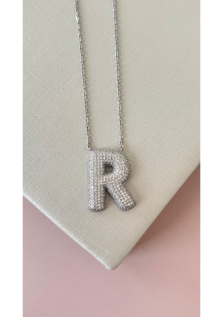 GARGANTILHA LETRA R PRATA 925 ZIRCONIAS