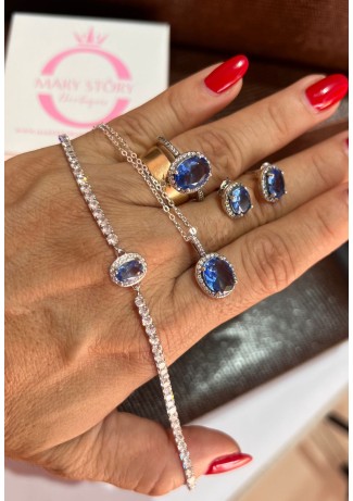 - Modelo: Pulseira Riviera Prata 925 & Zirconia Oval luxo Azul