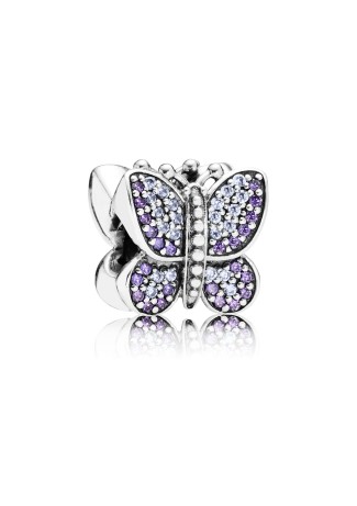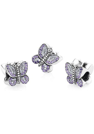 - Modelo: Berloque Borboleta Cravejada zir. lavanda e Branca Prata 925