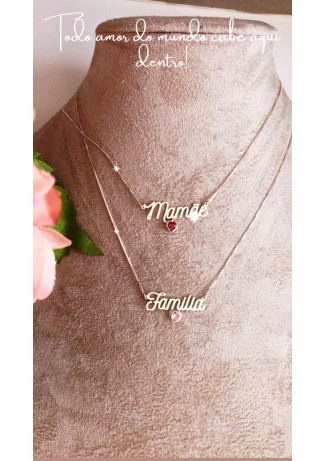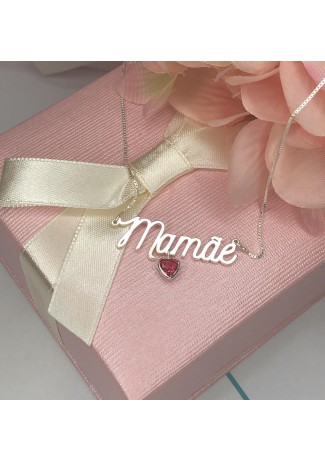 - Modelo: Gargantilha Mamãe em Prata 925 Zirconia Rosa