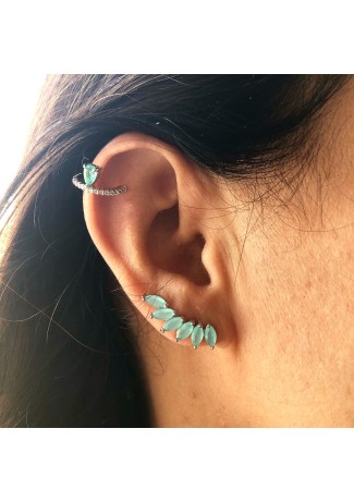 - Modelo: Brincos Ear Cuff Prata e Zirconias Verde Mar.