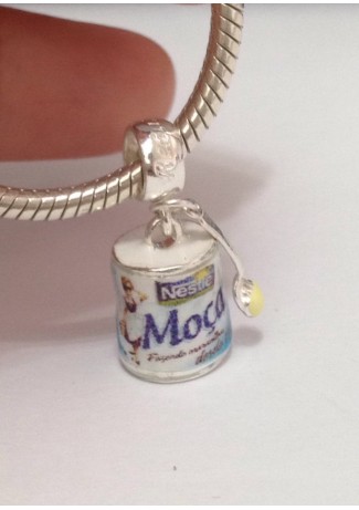 Berloque Leite Condensado prata e Esmalte, compatível com pulseiras Mary Story e de outras principais marcas.