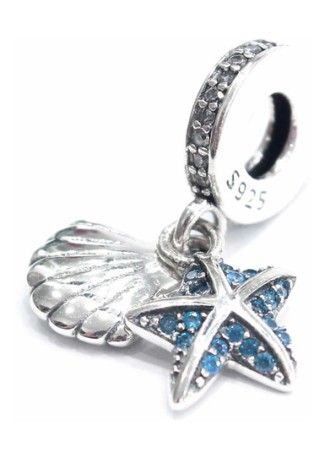 Trava clip  Estrela cravejada Azul Prata 925compativel com pulseiras para berloques ..